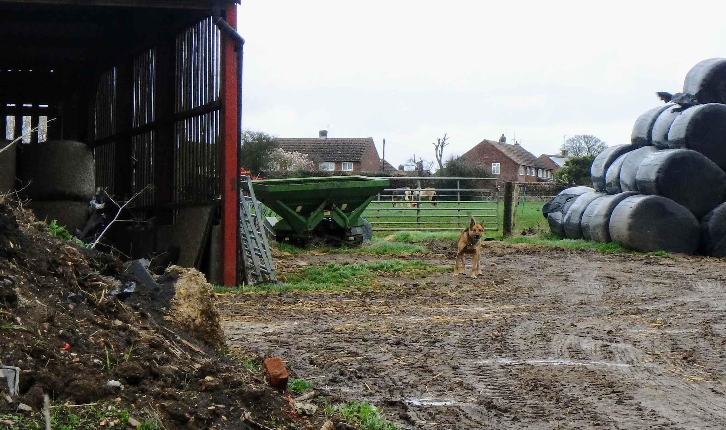 To overcome the disappointment we select another walk in our slow encirclement of Luton. The first part of our walk reprises the previous Toddington ‘not one of your better walks’ route, before emerging the other side of Toddington into Alma Farm. Picking our way through the muddy farmyard is given added spice by the accompaniment of snapping, snarling Alsatians and Rottweilers, thankfully chained. Nevertheless we’re left with the feeling of not being particularly welcome.